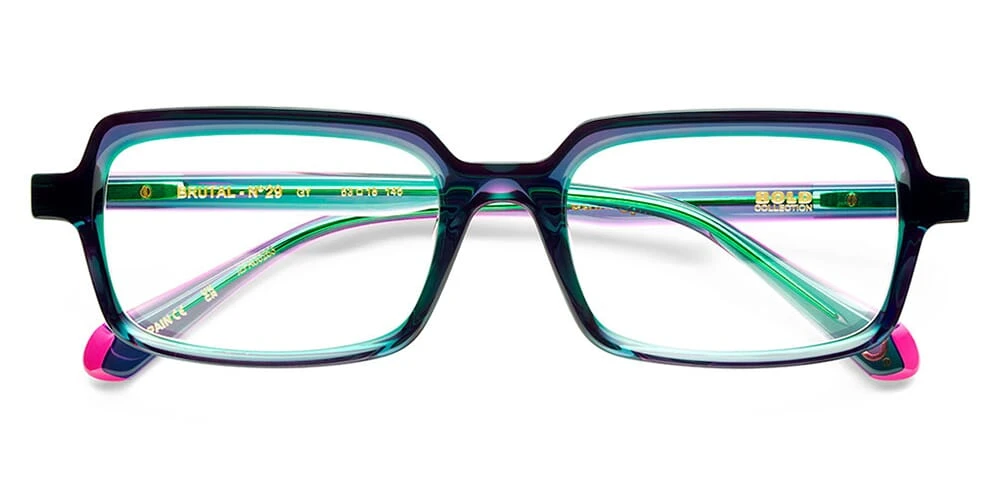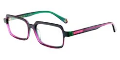 This square Etnia Barcelona optical comes in a dark crystal purple on crystal pink and green frame.