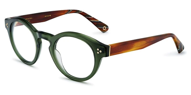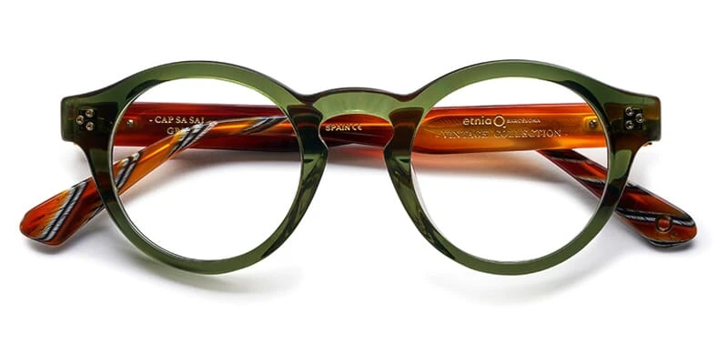 Introducing the Cap Sa Sal GRHV from Etnia Barcelona’s Vintage Collection, a captivating pair of round-shaped glasses that effortlessly merges vintage aesthetics with a contemporary twist. The Green Havana frame adds a touch of natural elegance, making these glasses a stylish accessory for those who appreciate unique and eclectic styles. Crafted from high-quality acetate, these glasses offer durability and a refined aesthetic.