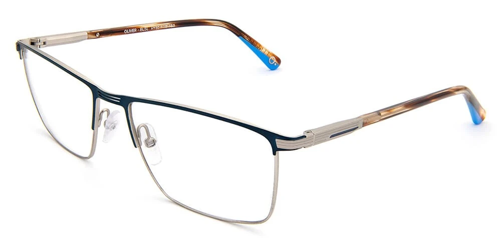 This square Etnia Barcelona optical comes in a matte metallic blue with silver frame.