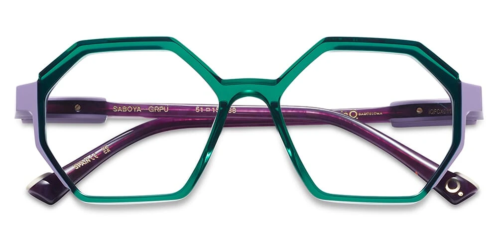 This square Etnia Barcelona optical comes in a green with lilac and purple frame.