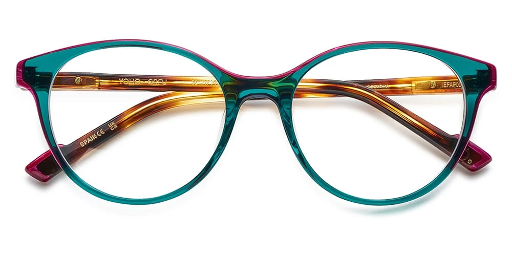 This square Etnia Barcelona optical comes in a crystal emerald green with maroon and brown frame.