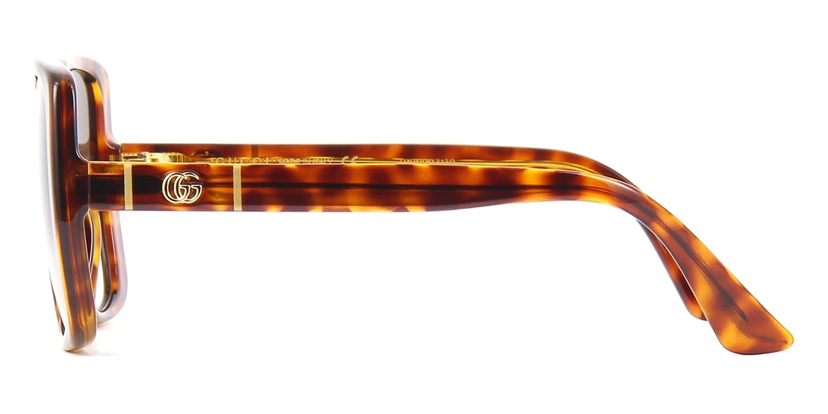 This square Gucci sunglass comes in a havana frame with brown gradient lenses.