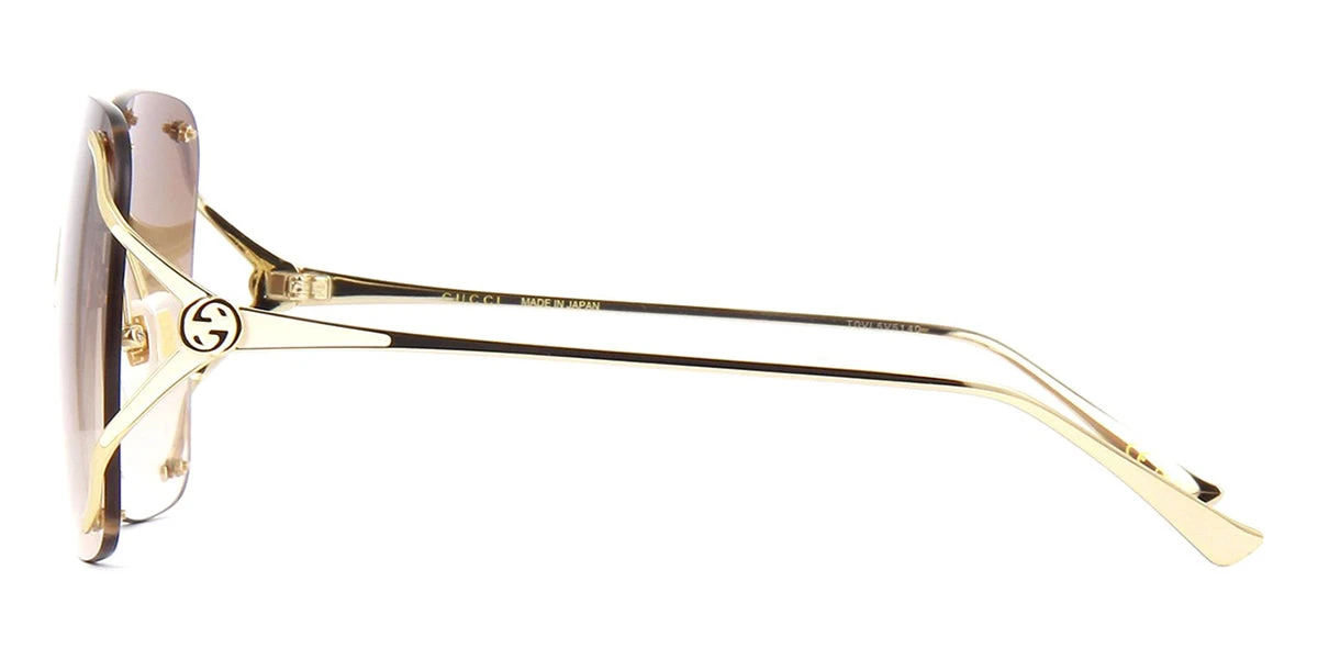 This square Gucci sunglass comes in a gold frame with brown gradient lenses.