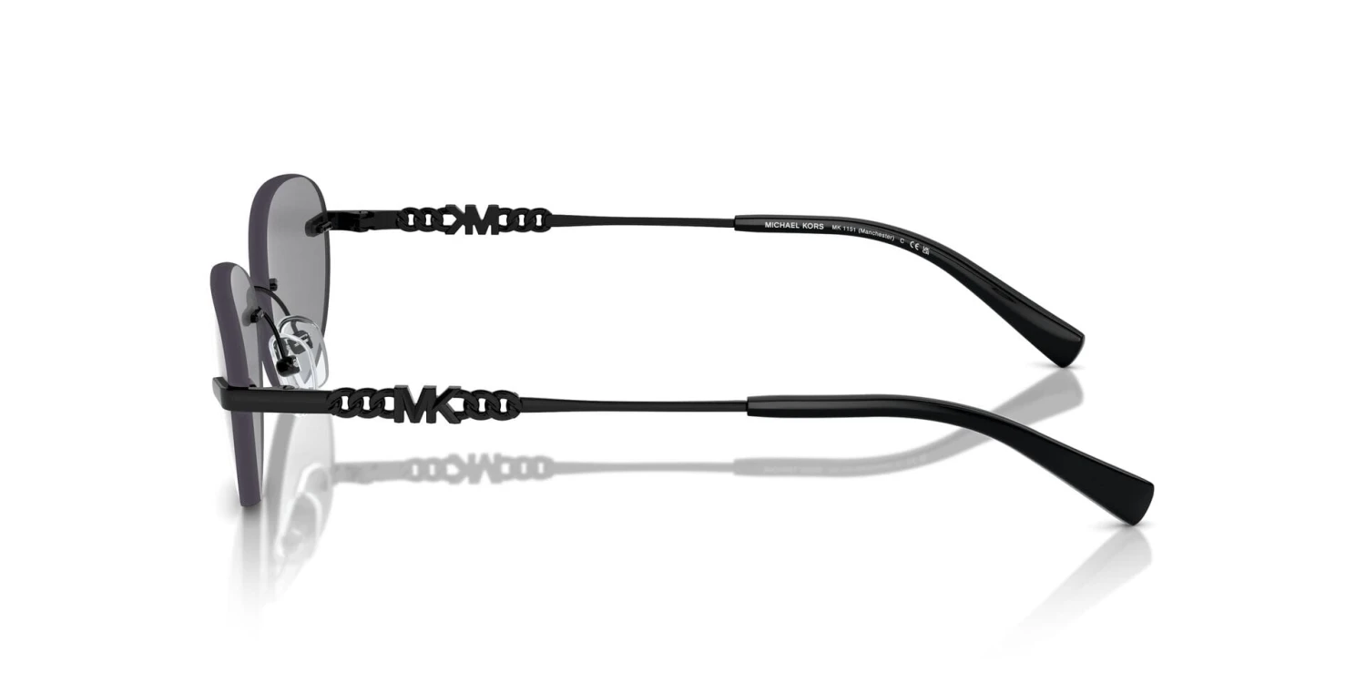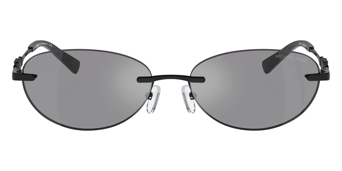 This round Michael Kors sunglass comes in a black frame with grey solid back mirror lenses.