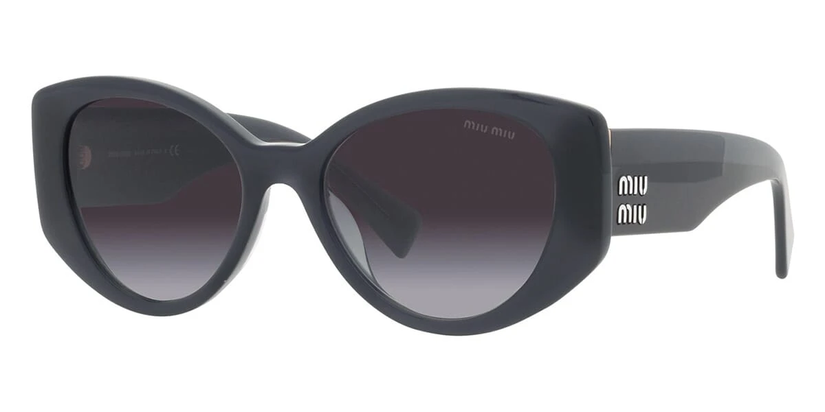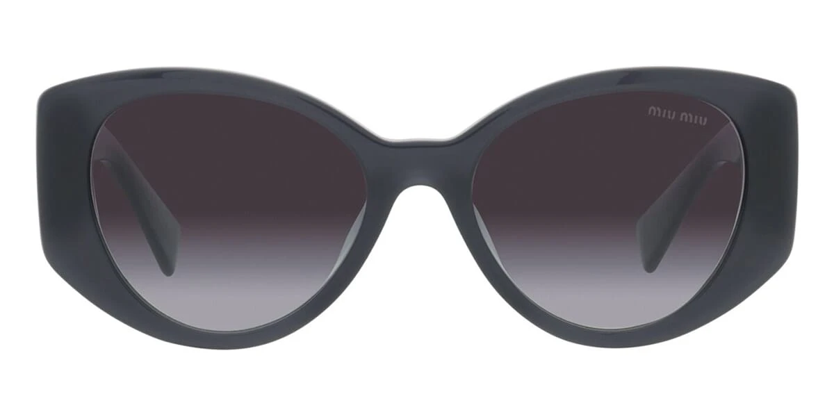 This round Miu Miu sunglass comes in a grey opal frame with grey gradient lenses.