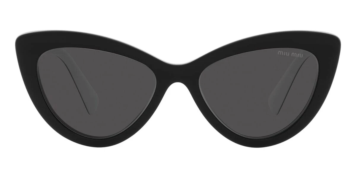 This cat eye Miu Miu sunglass comes in a black frame with dark grey lenses.