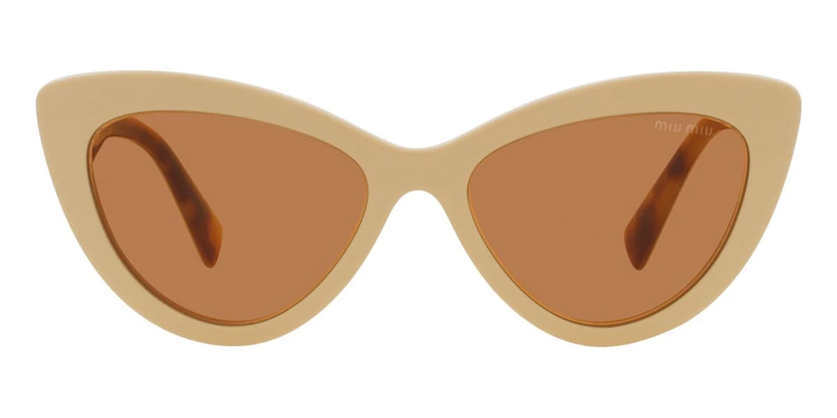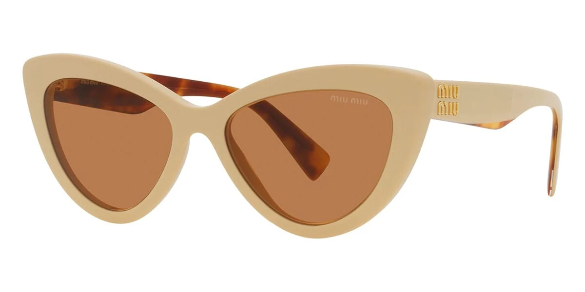 This cat eye Miu Miu sunglass comes in a beige frame with brown lenses.