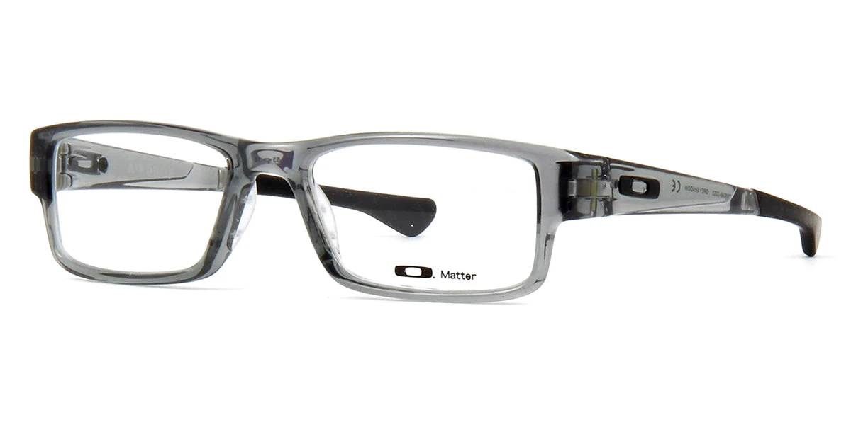 This rectangular Oakley optical comes in a grey shadow frame.