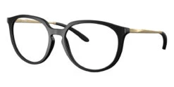 This round Oakley optical comes in a satin black and gold frame.
