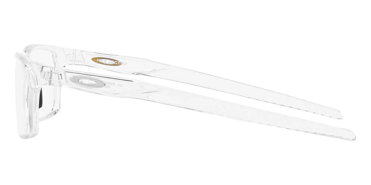This rectangular Oakley optical comes in a polished clear frame.