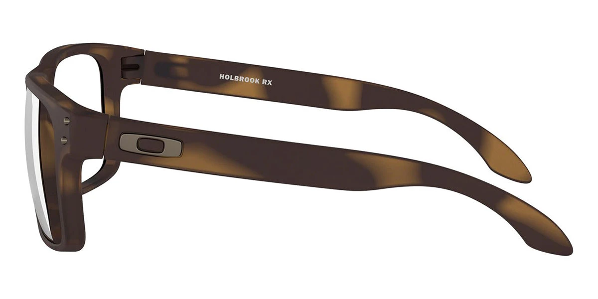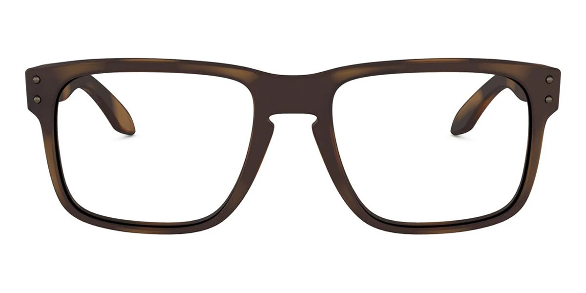 This square Oakley optical comes in a matte brown tortoise frame.