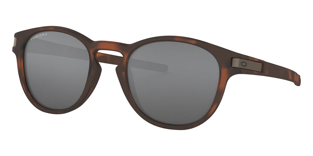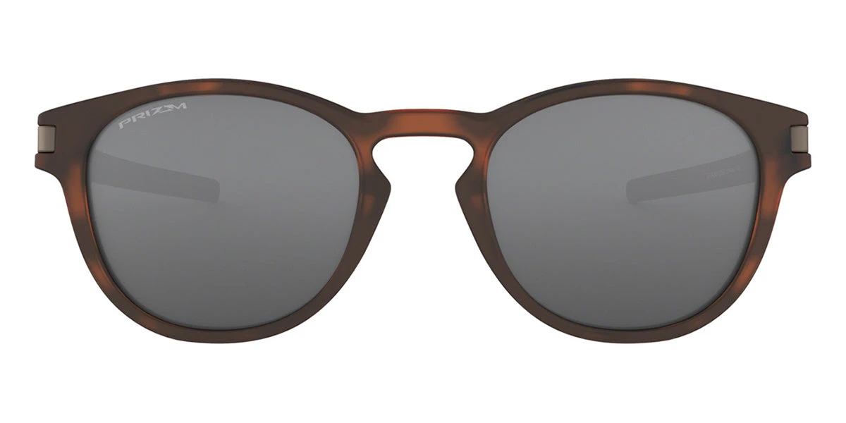 This round Oakley sunglass comes in a matte brown tortoise frame with prizm black lenses.