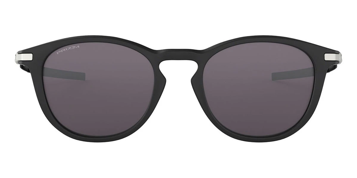 This round Oakley sunglass comes in a satin black frame with prizm grey lenses.