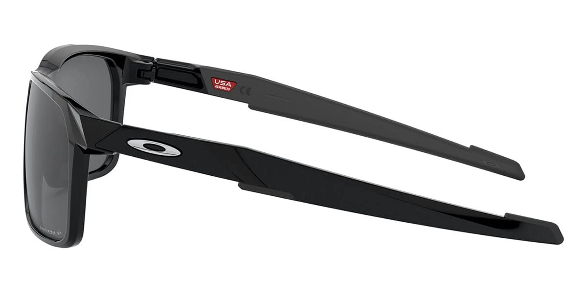 This rectangular Oakley sunglass comes in a polished black frame with prizm black polarised lenses.