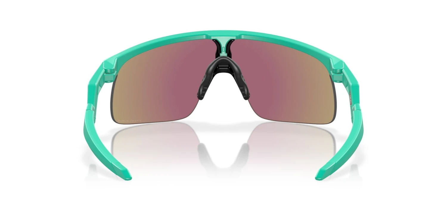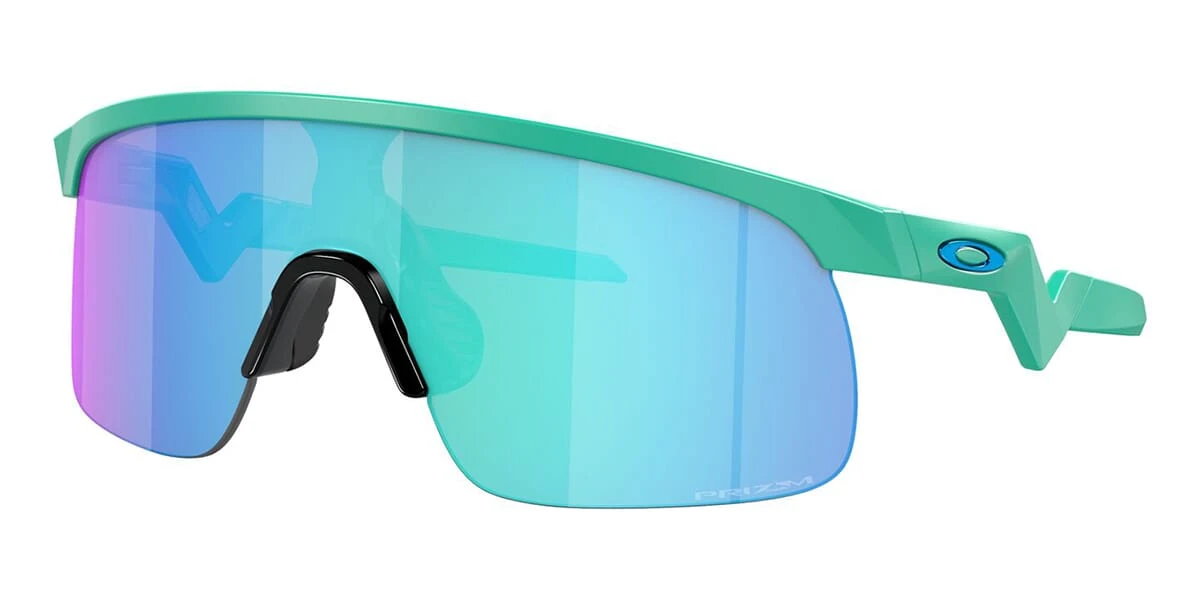 This shield Oakley sunglass comes in a matte celeste frame with prizm sapphire lenses.