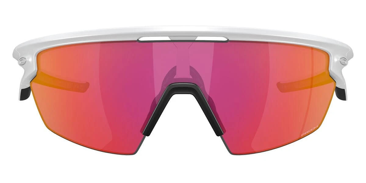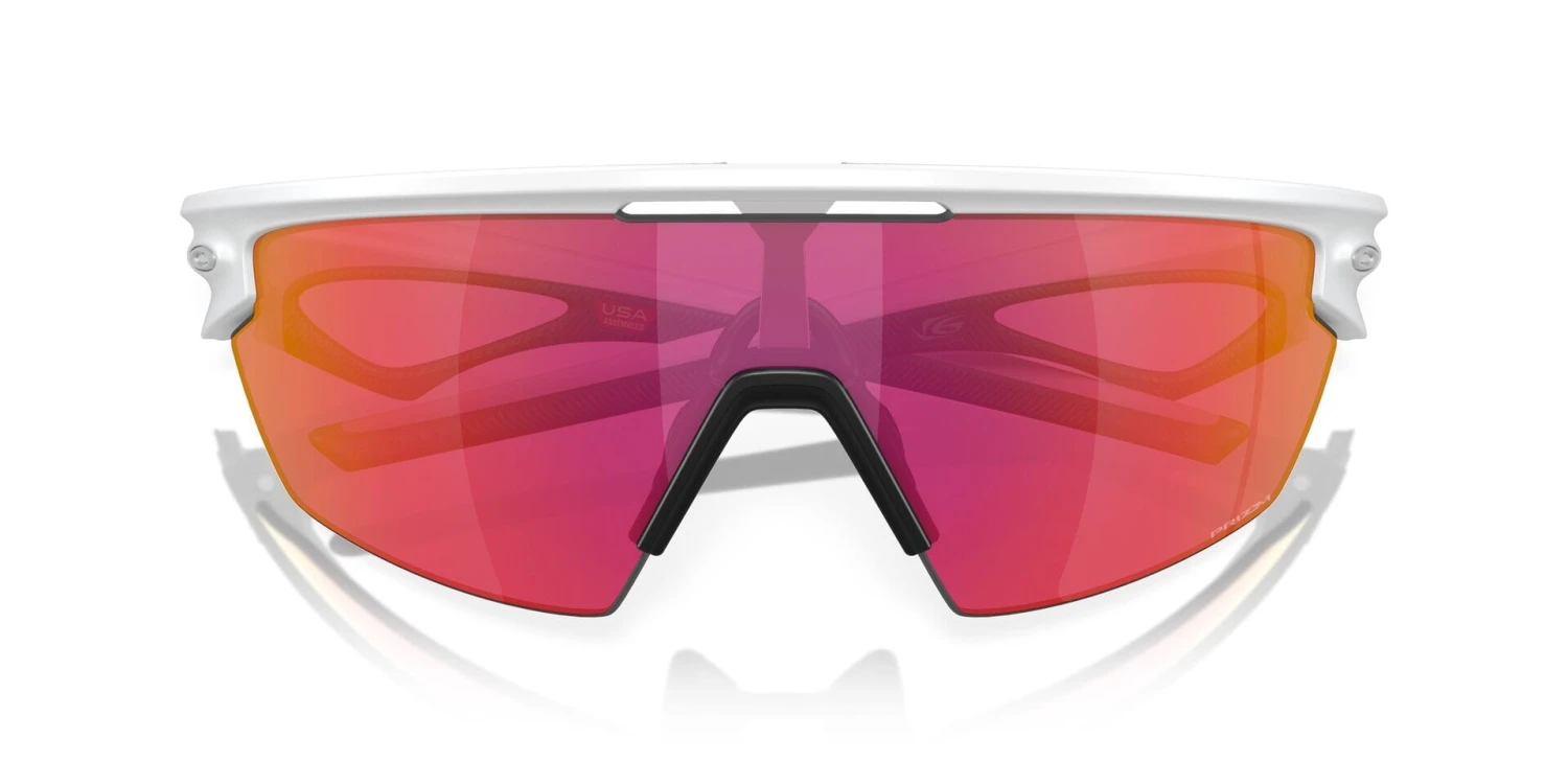 This shield Oakley sunglass comes in a matte white frame with prizm field lenses.