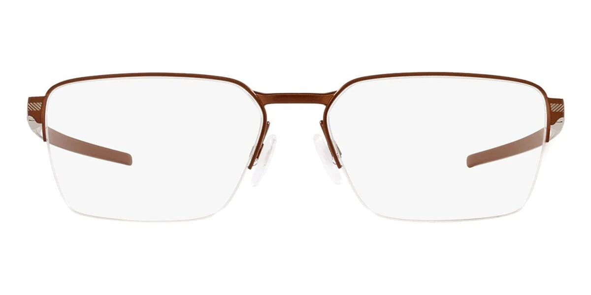 This rectangular Oakley optical comes in a matte brushed grenache frame.
