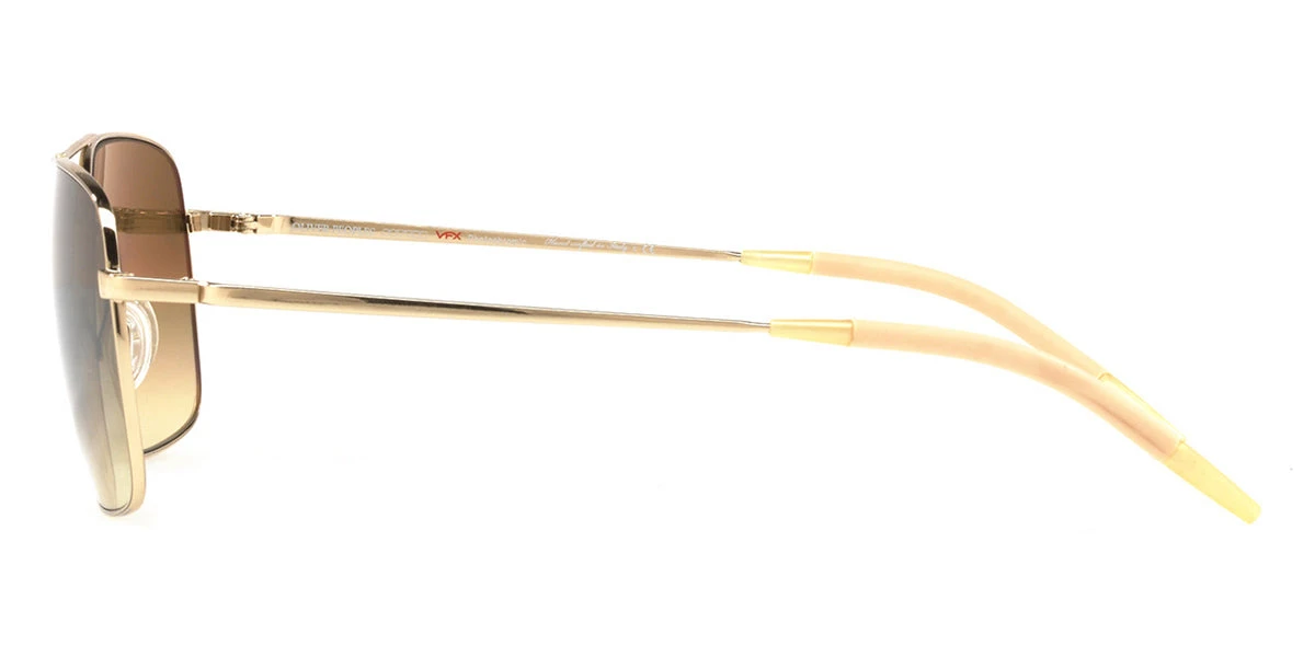 This rectangular Oliver Peoples sunglass comes in a gold frame with chrome olive photo glass vfx photochromic lenses.