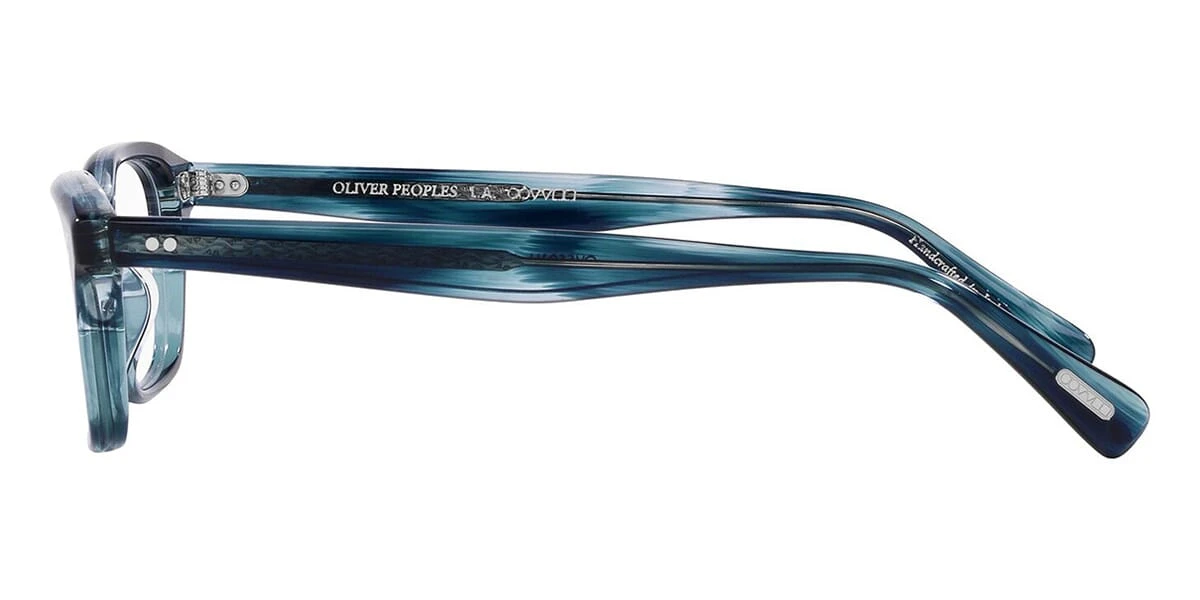 This rectangular Oliver Peoples optical comes in a dark blue vsb frame.