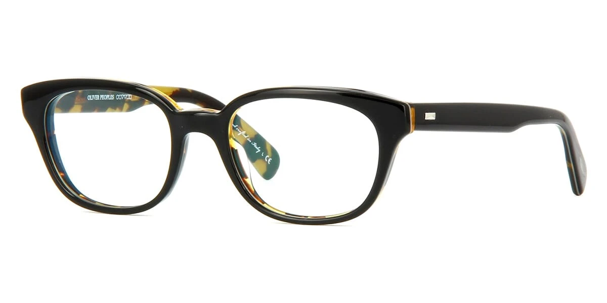 This rectangular Oliver Peoples optical comes in a black on tortoise frame.