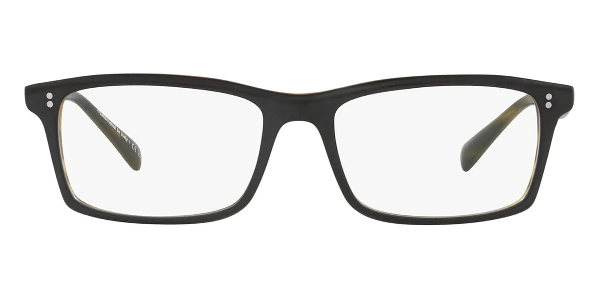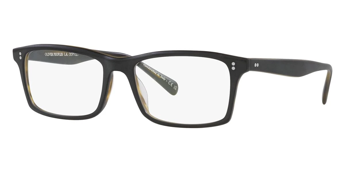 This rectangular Oliver Peoples optical comes in a semi matte black and olive tortoise frame.