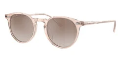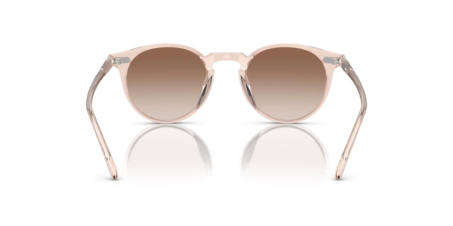This round Oliver Peoples sunglass comes in a cherry blossom frame with tuscan brown gradient with light mirror lenses.