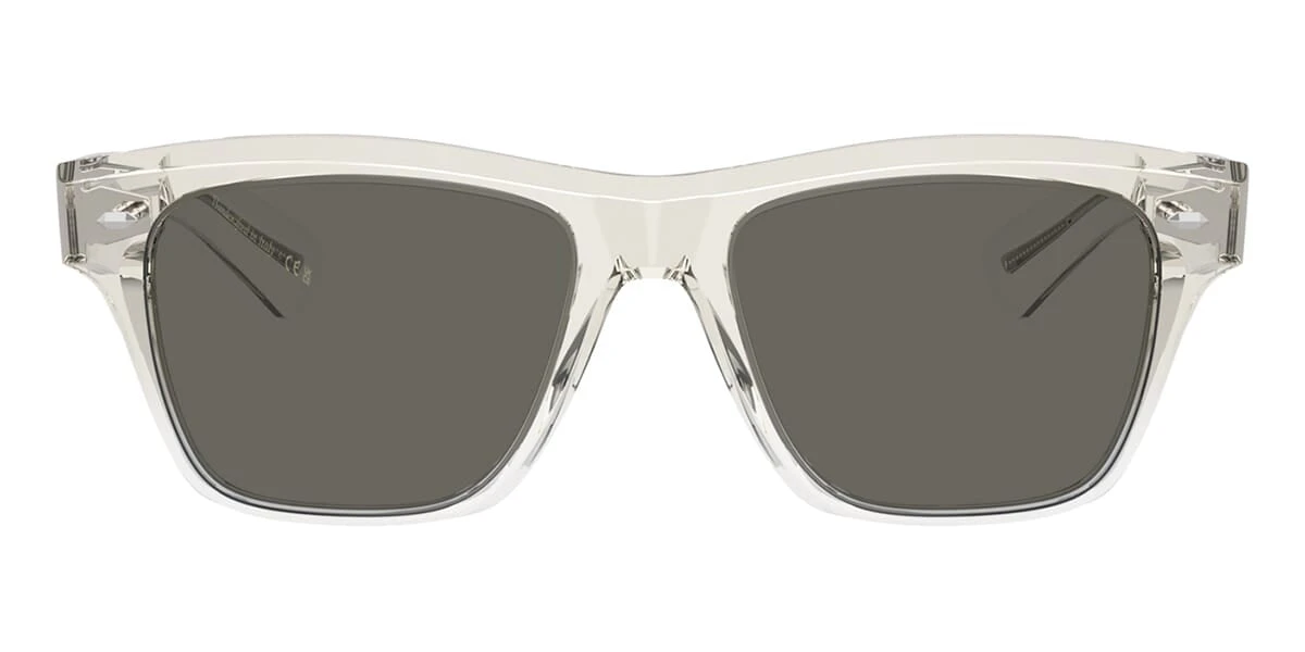 This square Oliver Peoples sunglass comes in a crystal gradient frame with carbon grey lenses.