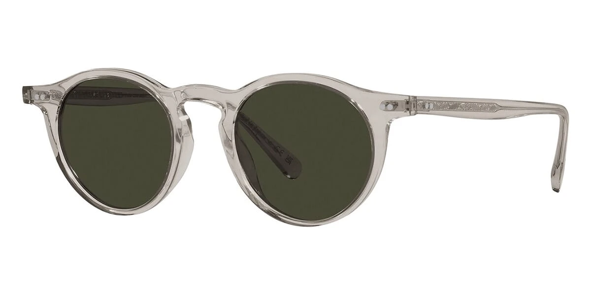 This round Oliver Peoples sunglass comes in a gravel frame with g-15 green polarised lenses.