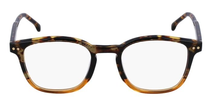 This square Paul Smith optical comes in a stripes havana and mustard frame.