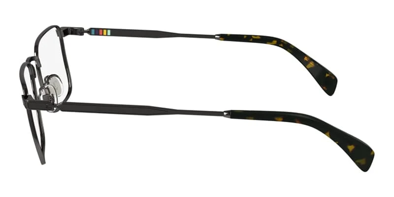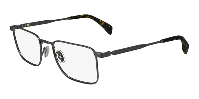 This square Paul Smith optical comes in a dark gunmetal grey frame.
