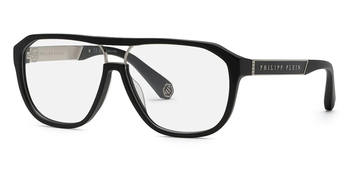 This square Philipp Plein optical comes in a matt black with silver frame.