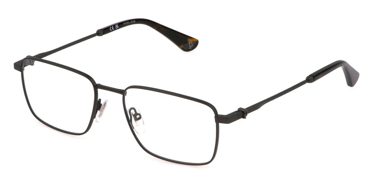 This square Police optical comes in a matte gun metal grey frame.