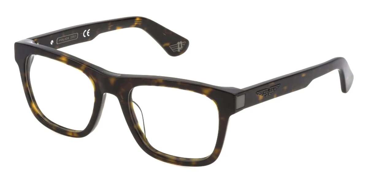 This square Police optical comes in a shiny dark havana frame.