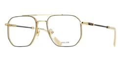 This square Police optical comes in a shiny gold frame.