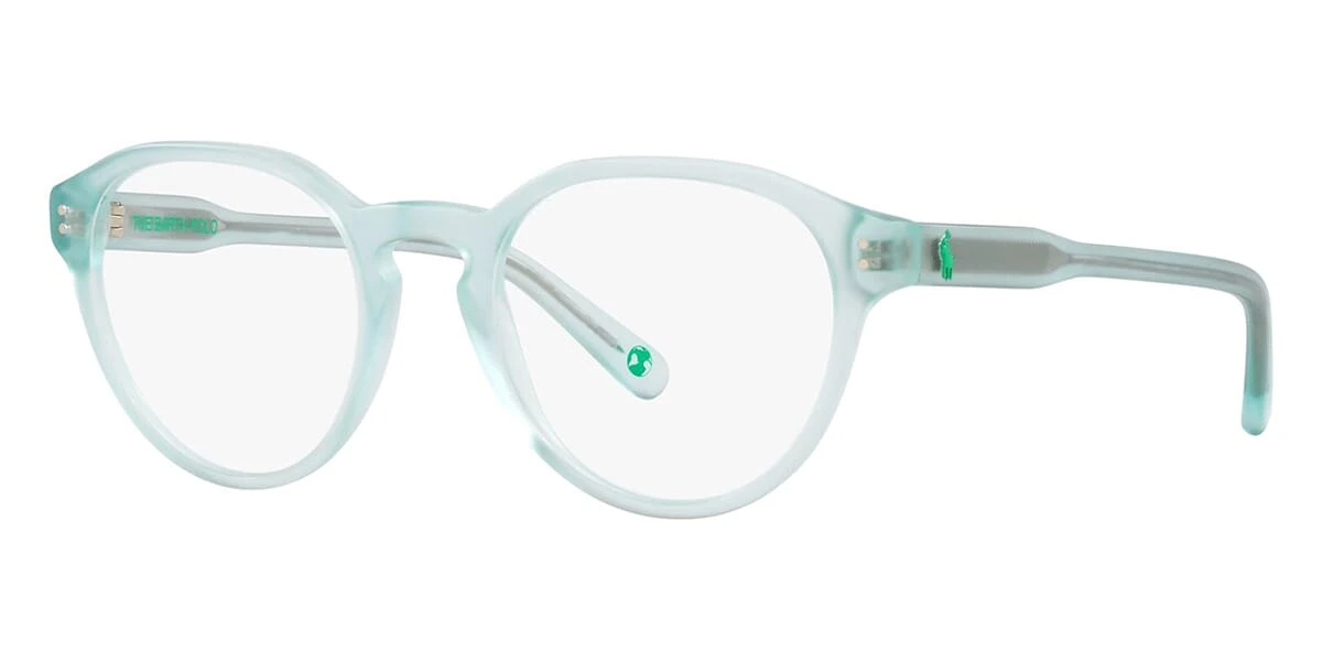 This round Polo optical comes in a matte transparent aquamarine frame.