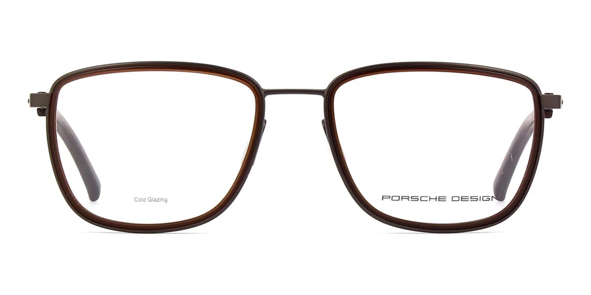 This square Porsche Design optical comes in a matte brown crystal and dark ruthenium frame.