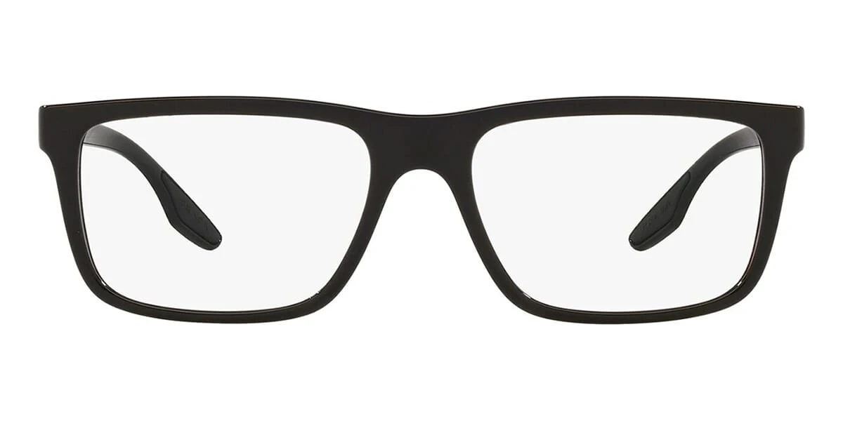 This rectangular Prada Linea Rossa optical comes in a black frame.