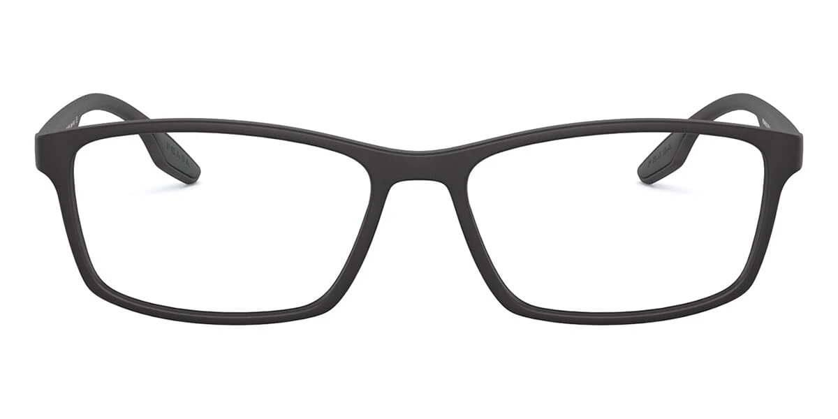 This rectangular Prada Linea Rossa optical comes in a matte black frame.