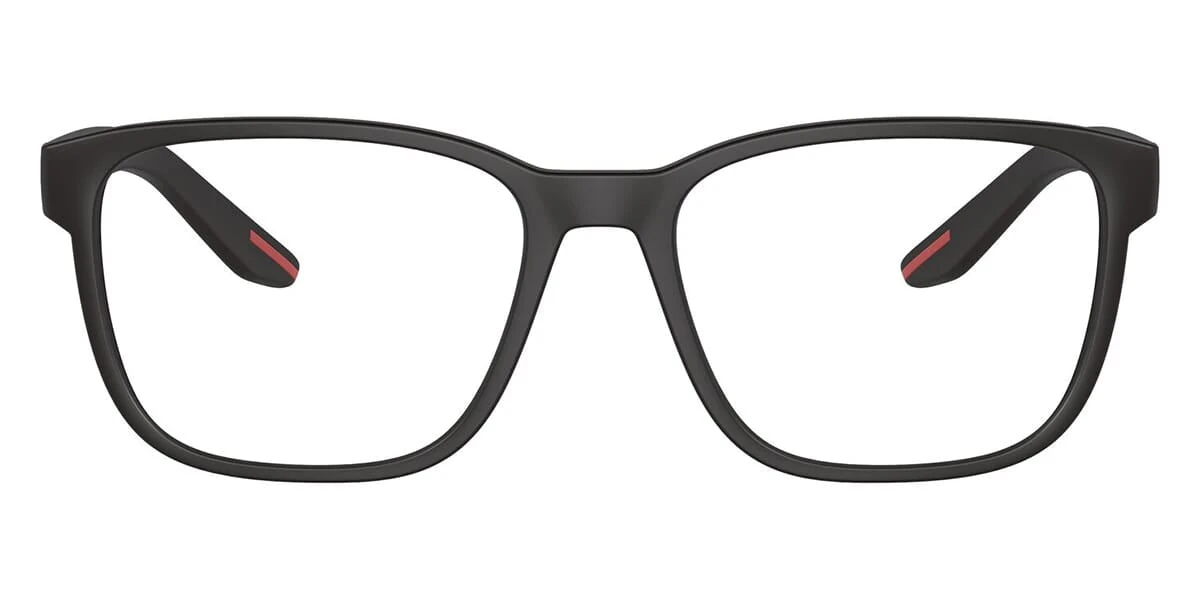 This square Prada Linea Rossa optical comes in a matte black frame.