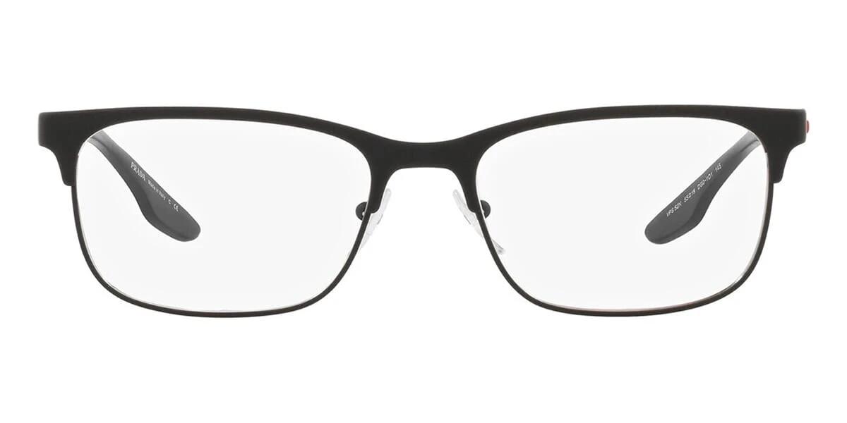 This rectangular Prada Linea Rossa optical comes in a black rubber frame.