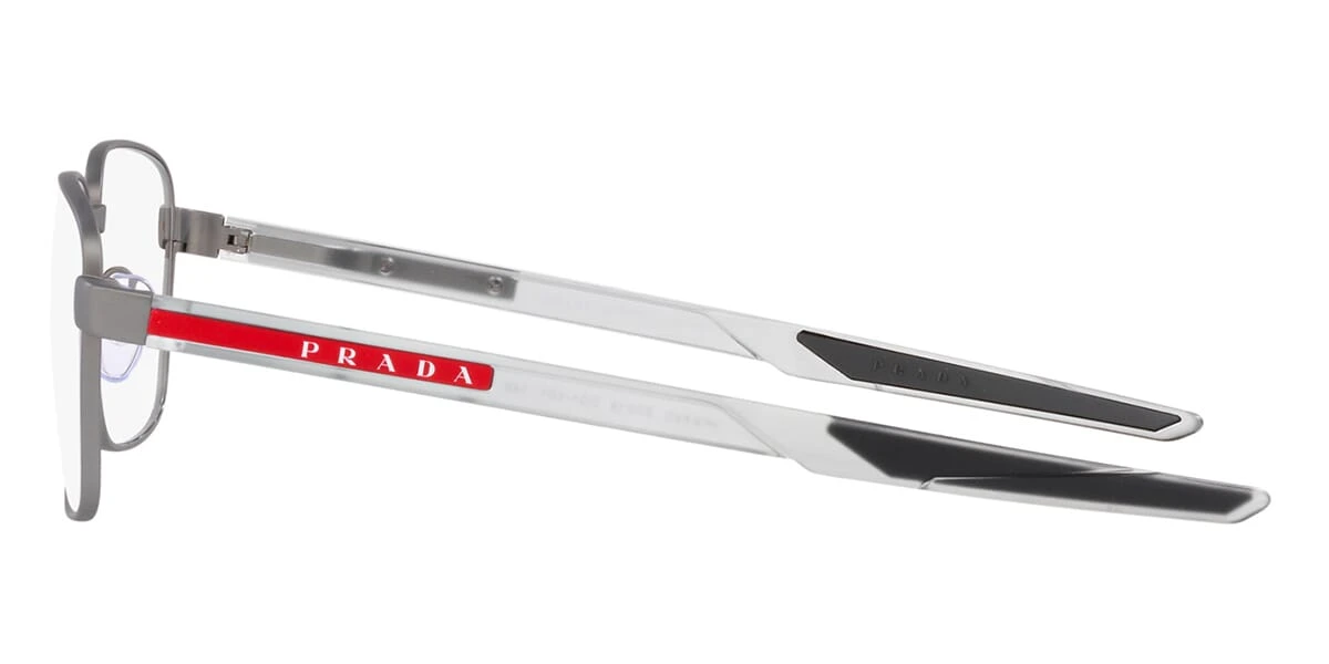 This rectangular Prada Linea Rossa optical comes in a grey frame.