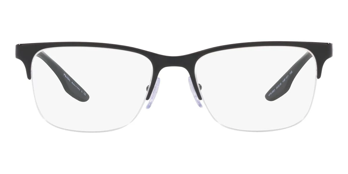 This rectangular Prada Linea Rossa optical comes in a black frame.