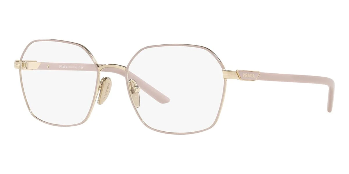 This square Prada optical comes in a alabaster and pale gold frame.