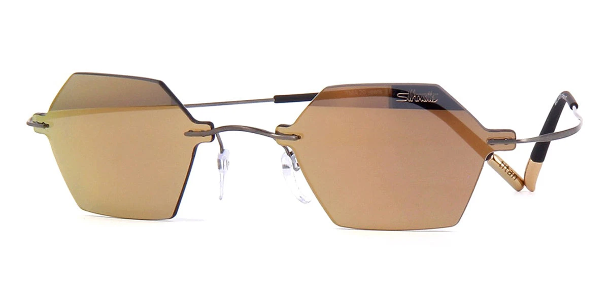 This square Silhouette sunglass comes in a matte gunmetal frame with grey with bronze mirror lenses.