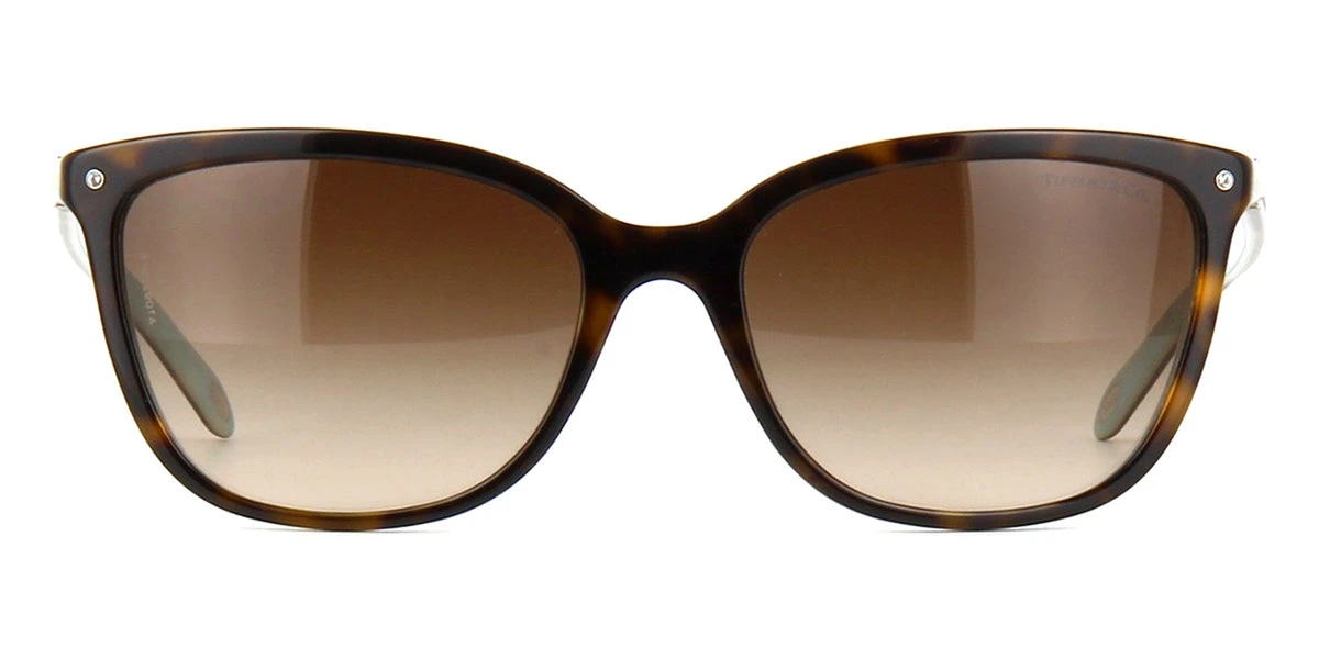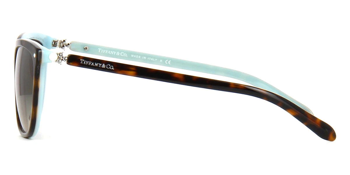 This round Tiffany sunglass comes in a havana and blue frame with brown gradient lenses.