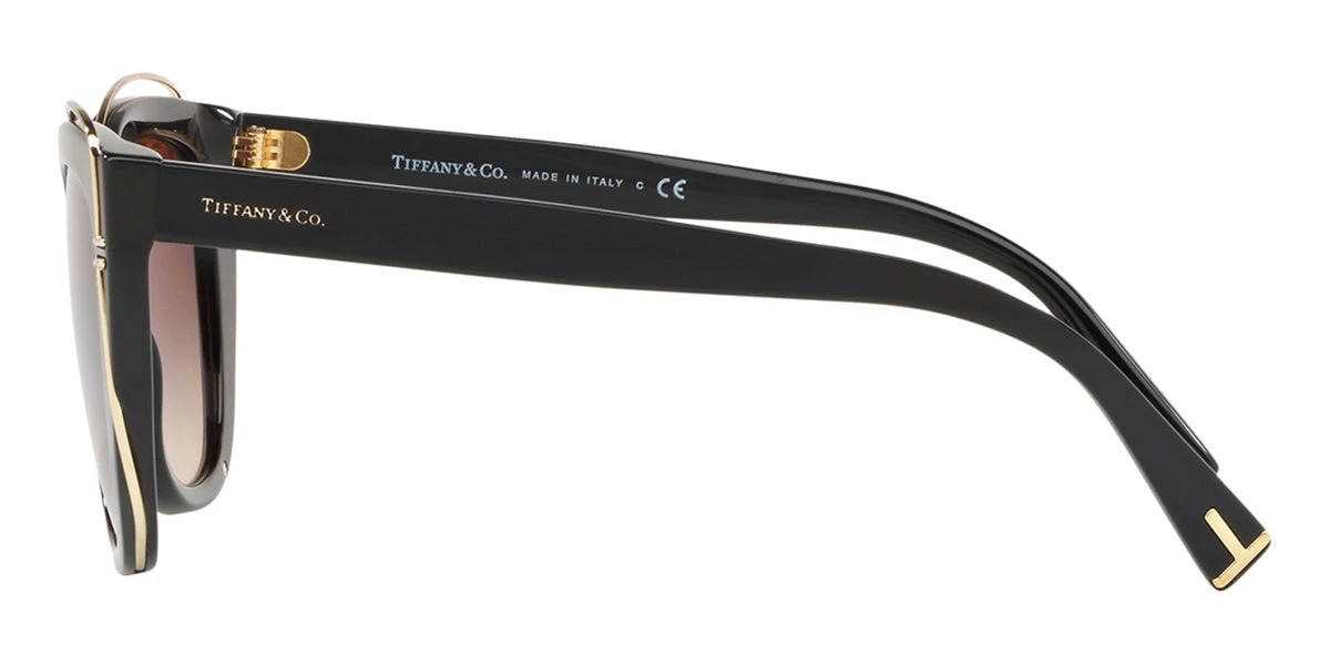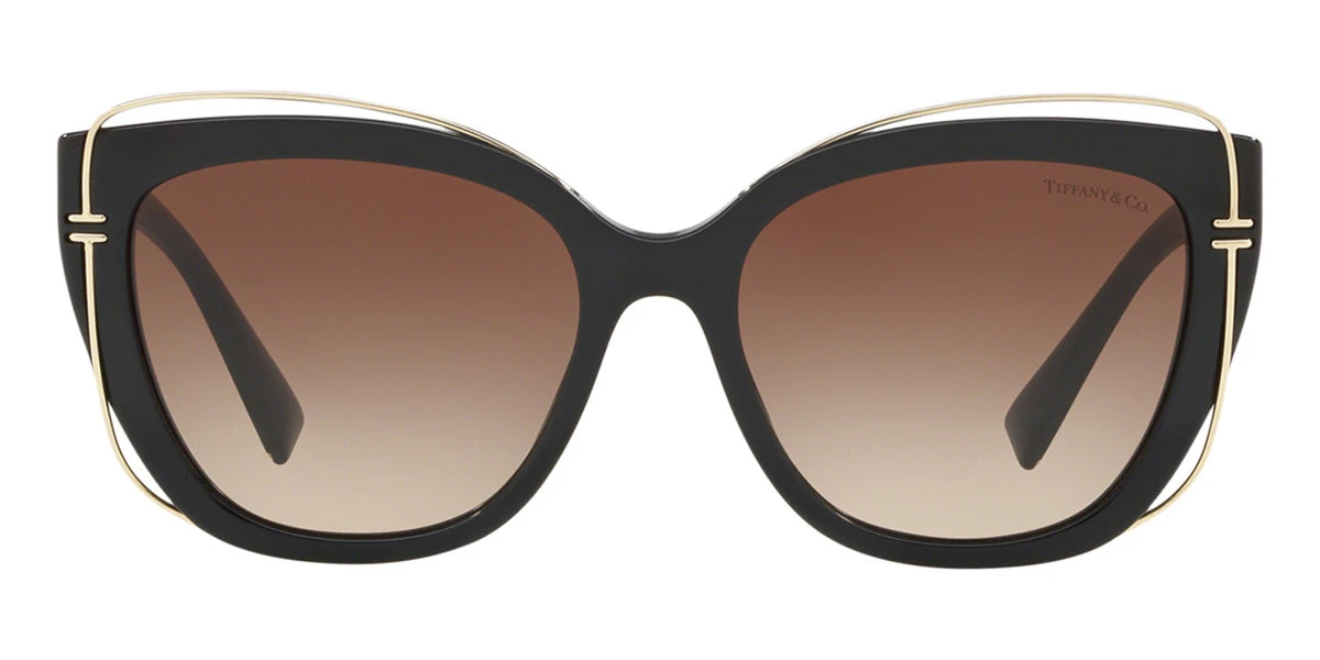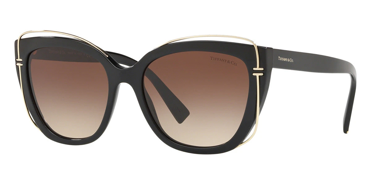 This cat eye Tiffany sunglass comes in a black frame with brown gradient lenses.