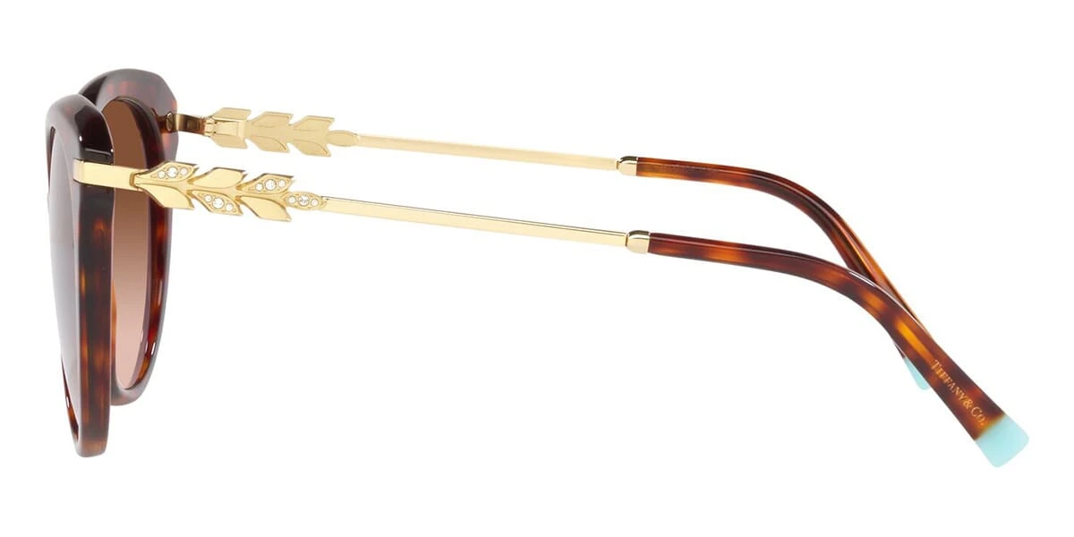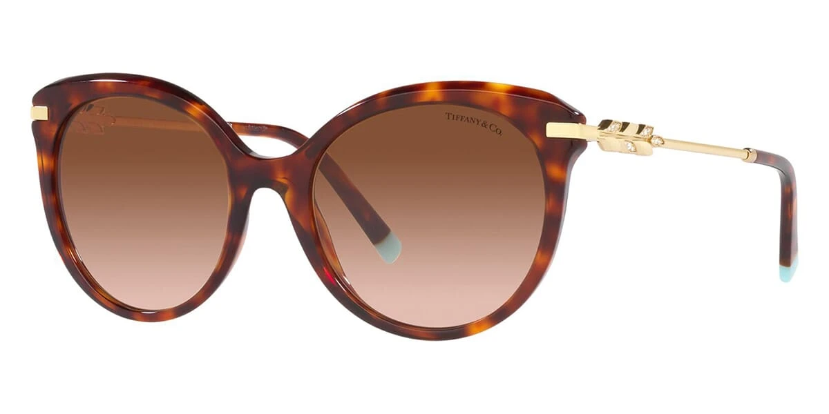 This cat eye Tiffany sunglass comes in a havana frame with brown gradient lenses.